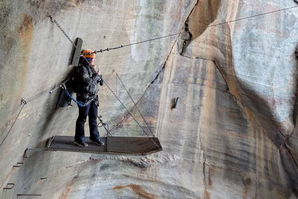Dafür geht es über mehrere Leitern, die senkrecht an der Steilwand herunter angebracht sind, weiter nach unten. Wer Höhenangst hat, bekommt spätestens jetzt ein Problem.