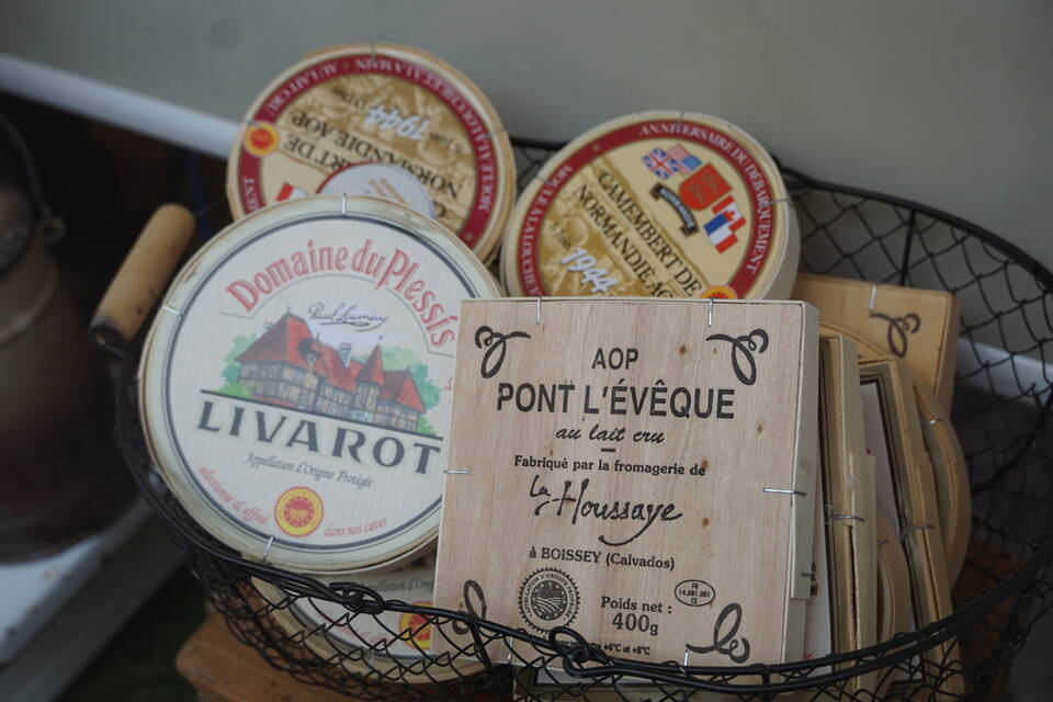 Der Besucher mag angesichts solcher Liebe zum Detail schmunzeln – doch David erzählt keinen Nonsens, der Alkohol nuanciert den Käse tatsächlich, ein Genuss, vor allem der Livarot wird noch einmal intensiver. "AOP steht für ‚Appelation d’Origine Protégée‘, das ist ein Herkunftsschutz-Siegel, könnte man sagen", erklärt David, während er die rustikalen Holzbretter auf die Tische stellt. "Alle der vier normannischen Käse tragen das AOP-Siegel, es definiert auch die Herstellung." Sowohl die Weidefütterung der Kühe, die Verarbeitung der Rohmilch nach traditionellen Methoden als auch das geografische Gebiet sind somit vorgegeben. Indes wird nur der Neufchâtel rechts der Seine produziert, die anderen drei sind links des Flusses im Pays d’Auge zu Hause.