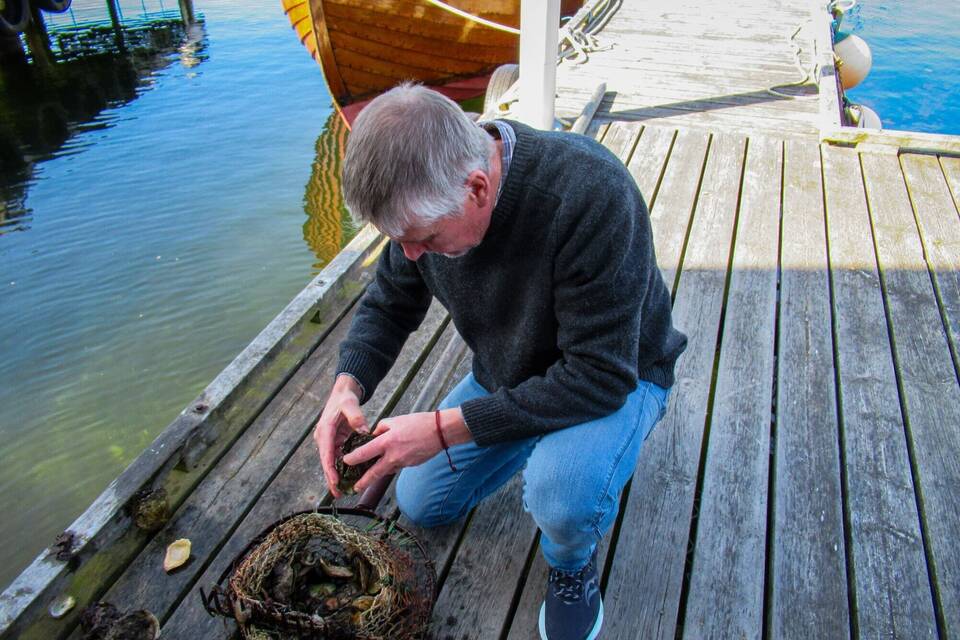 Während das Boot gemächlich Fahrt aufnimmt, erzählt Lars, wie er Muscheln und Austern züchtet. Die Austern wachsen in stapelbaren Kästen oder Netzbeuteln, die Muscheln hängen an Leinen in durchlässigen Körben - mitten im Fjord, wo das Wasser klar, sauerstoffreich und voller Nährstoffe ist. Ideale Bedingungen, unter denen die Meeresfrüchte ungestört wachsen können.