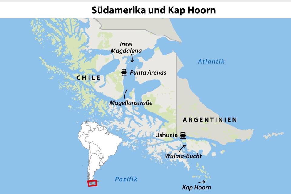 Reiseziel: Den Süden Südamerikas teilen sich Chile und Argentinien. Kap Hoorn und die Hafenstadt Punta Arenas gehören zu Chile, das am Beagle-Kanal gelegene Ushuaia ist Argentiniens südlichste Stadt.