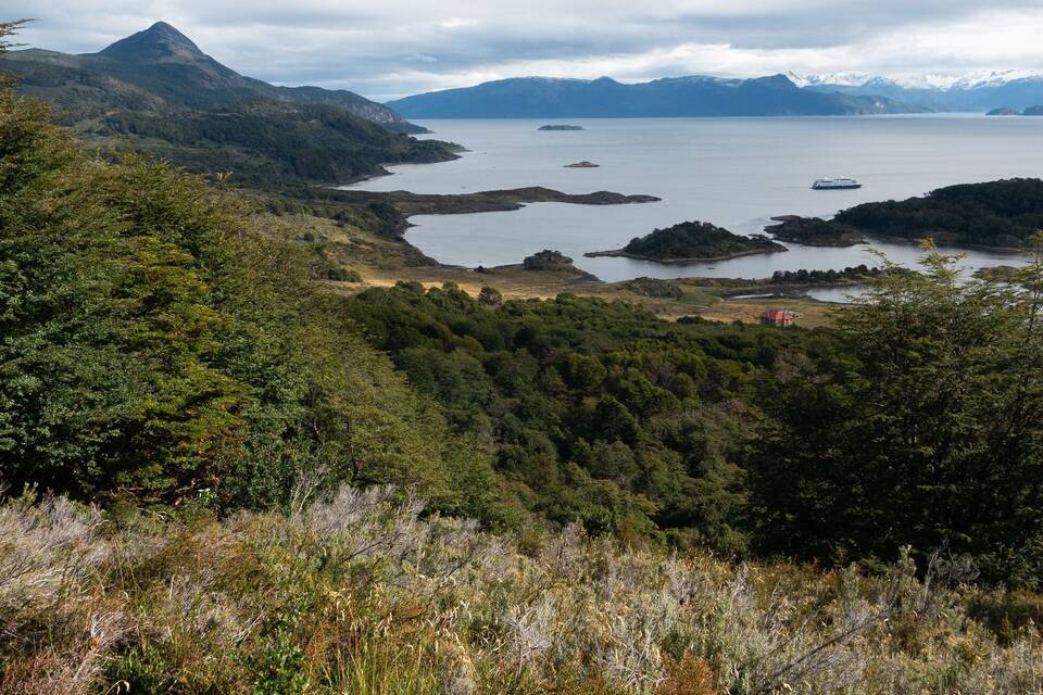 In einem Haus hinter der Bucht ehrt ein Museum das Volk der Yamana. Dahinter zieht sich ein Weg über einen rauschenden Fluss hinauf zum Aussichtspunkt. Flechten gleichen Greisenbärten. Die Blätter der Südbuchen schimmern hellgrün.