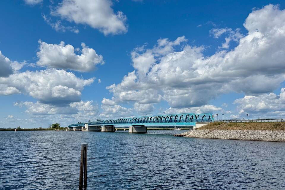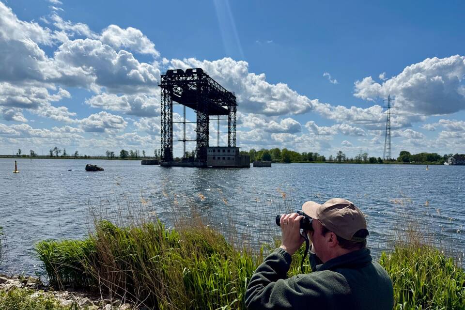 Ortstermin II: Die Hubbrücke von Karnin oder vielmehr deren rostige Reste am Rande des Stettiner Haffs, und damit einer von Wiggers heißen Tipps auf der Insel. Wieder der Schwenk mit dem Fernglas über das breite Wasser und die Bäume am Ufer. Ja, doch, da ganz hinten, Richtung Anklam, das könnte einer sein. "Ein ausgewachsener Seeadler mit weißem Stoß hinten", sagt Wigger und meint die Schwanzfedern. Aber er gibt zu: "Mit bloßem Auge keine Chance, das ist selbst mit dem Glas nicht leicht."