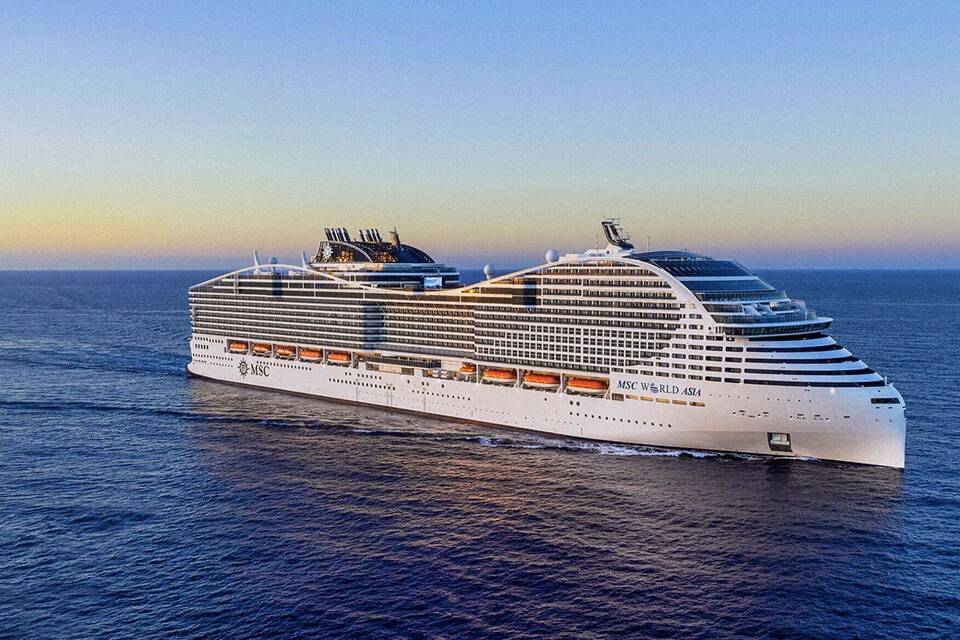 Geht es um die Passagierkapazität, ist sie der gewaltigste Neuzugang auf den Weltmeeren: Die "MSC World Asia" bietet Platz für bis zu 6.758 Passagiere.
