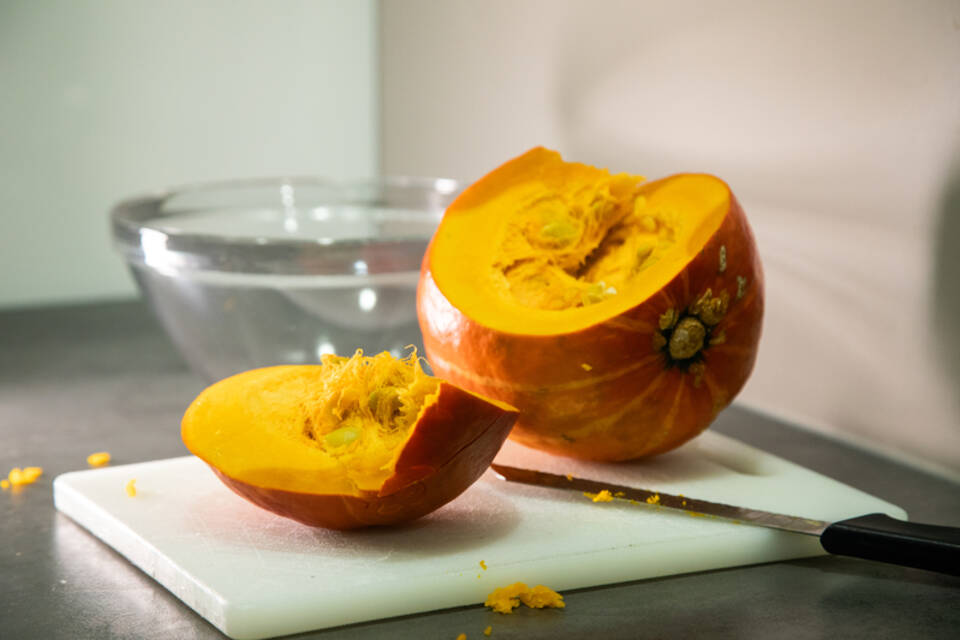 Berlin. (dpa-tmn) Im Oktober hat die orangefarbene Frucht ihren großen Auftritt: Jetzt wird der Kürbis wieder geschnippelt, gewürfelt und püriert - wenn er nicht zu hart ist. Denn dann wird das Zerkleinern zum echten Kraftakt. Kann man etwas tun, damit sich ein Kürbis leichter schneiden lässt?