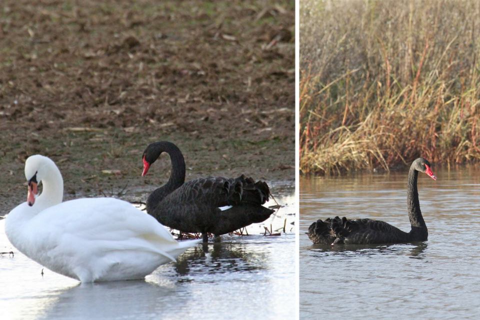 Die Naturfotografin Anna Stern hat einen Trauerschwan entdeckt. Im Winter sind die Tiere in Gruppen unterwegs.