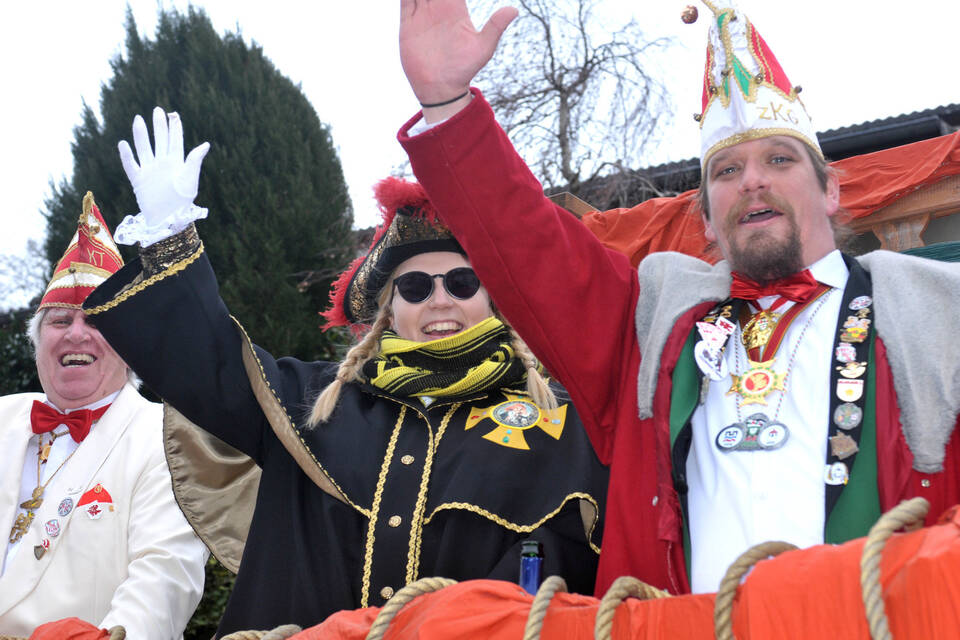 All das sorgte im Prinzip für einen bombastischen Dreiklang. Zuvorderst die karnevalistischen Vereine selbst, ob ZKG, die Neckargemünder Narrenschar mit Prinzessin Lea I., der Sulzbacher Carnevalsverein, die Kurpfälzer Trabanten oder der Heidelberger und Eppelheimer Carnevalsclub. Die Krönung fand dies nicht zuletzt im Wagen des Heidelberger Karneval-Komitees, von dem das Symbol der Heidelberger Fastnacht, "Perkeo" Thomas Barth, huldvoll grüßte, oder auch in dem Senatorenwagen der ZKG, von dem ein bestens gelaunter Oberbürgermeister Eckart Würzner immer wieder in den Süßigkeitenbeutel griff, um mit beiden Händen den zujubelnden Kindern gerecht zu werden.