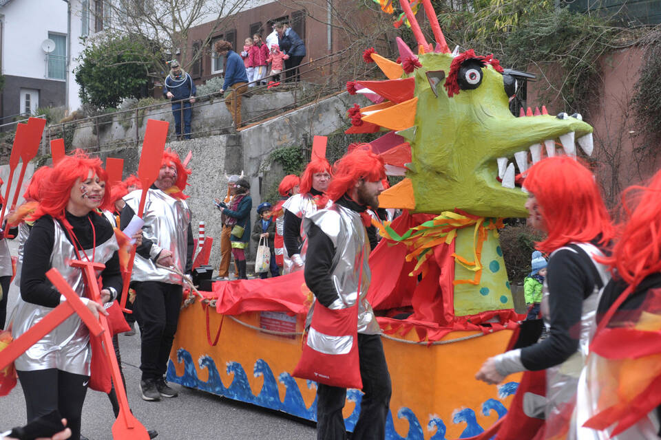 Was machte den närrischen Lindwurm so attraktiv, dass an die tausend Teilnehmer die Straße bevölkerten und zigtausende Zaungäste sich diesem verrückten Treiben hingaben? Mit Sicherheit neben der Atmosphäre am Neckar und der ausgetüftelten Werbekampagne der immense Einsatz des mittlerweile neun Mitglieder umfassenden Ensembles der "Bobbeschees Waggis" von der ZKG - das sind die Fastnachter mit ihren grotesken Masken, die sie der Basler Fastnacht entliehen haben -, die im ganzen Ländle bislang umhertourten, und nicht zuletzt eine sichtlich verjüngte Schar von Verantwortlichen des örtlichen karnevalistischen Traditionsvereins.