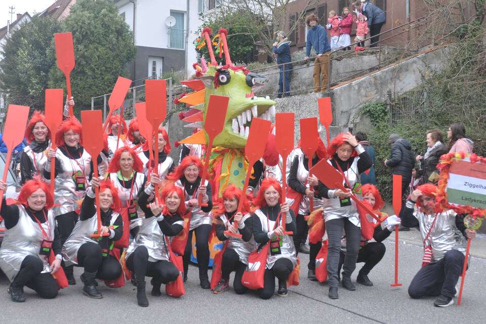 Heidelberg-Ziegelhausen. Dieser Umzug dürfte in die Annalen der Fastnachtsgeschichte des Stadtteils eingehen: Menschentrauben, wohin man auch blickte und die sich überhaupt nicht auflösen wollten, auch wenn die letzte der knapp 70 Gruppierungen schon lange den Weg "vunn der Stoobach", der Urzelle der Ziegelhäuser Karnevalsgesellschaft (ZKG), bis zum Dorf gefunden hatte. Stundenlang herrschte nämlich überall fastnachtliche Glückseligkeit angesichts des bunten Spektakels - und untermauerte damit die vielen Superlative, die schon zuvor der Hauptorganisator des Umzugs, ZKG-Vizepräsident Adrian Rehberger, und später Zugmarschall Volker Lieboner stets mit dreifach donnerndem "Ahoi" verkündeten.