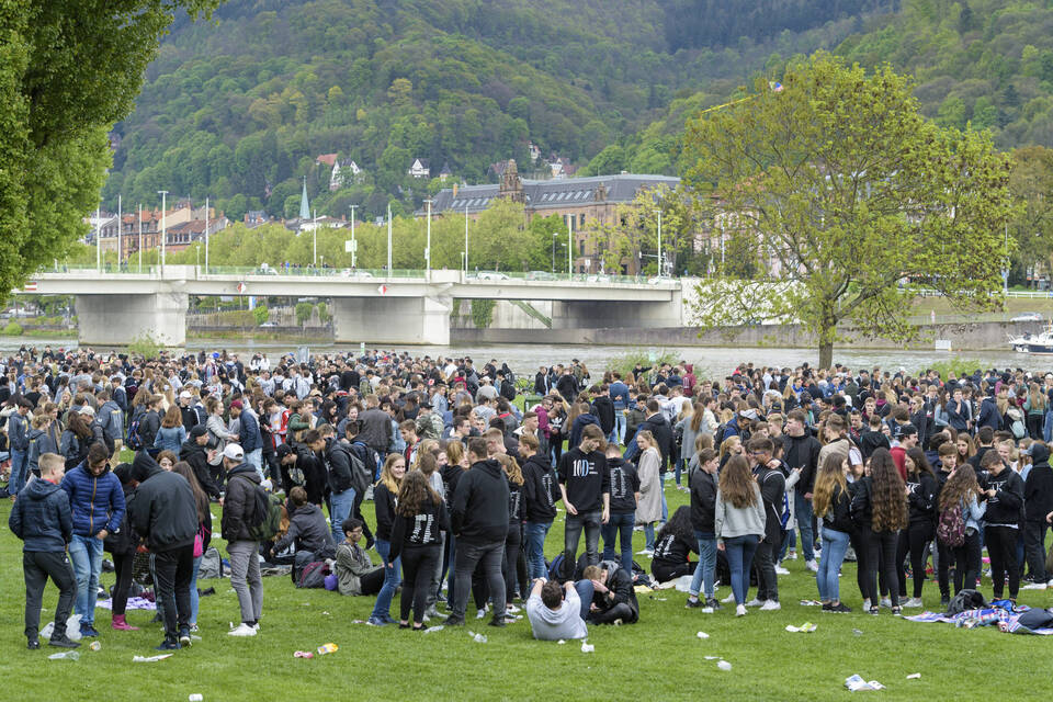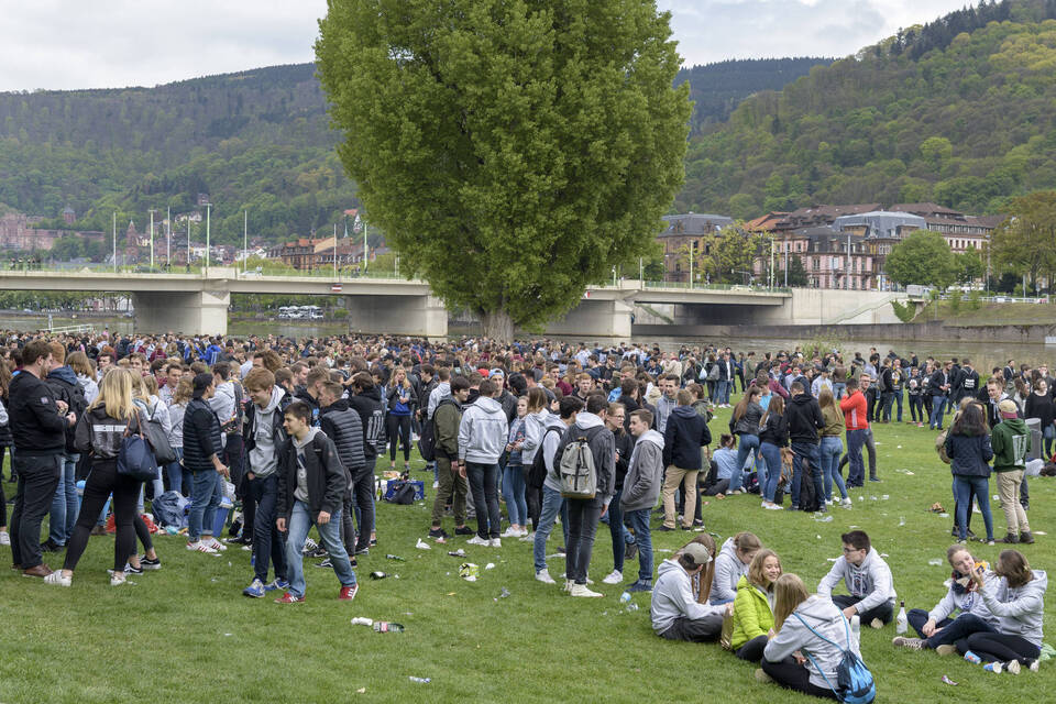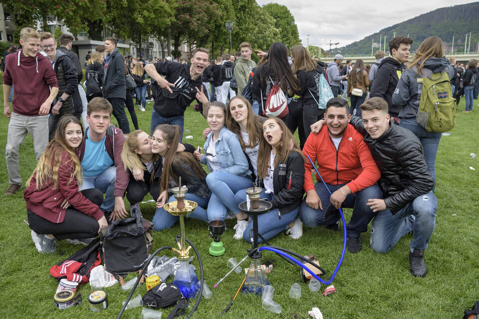 Der Anfang der Abifeiern so gegen 12 Uhr war noch relativ gesittet, doch dann nahm das Treiben sichtlich an Fahrt auf. Bis zum Mittwochabend hatten sich über 2000 junge Leute, neben Gymnasiasten auch viele Realschüler, auf der Neckarwiese versammelt, um ihren Schulabschluss zu feiern - mehr als doppelt so viele wie im Vorjahr, wie die Polizei der RNZ berichtete. Sie hinterließen am Abend eine vollkommen zugemüllte Wiese, und einige hatten sich fast besinnungslos getrunken.