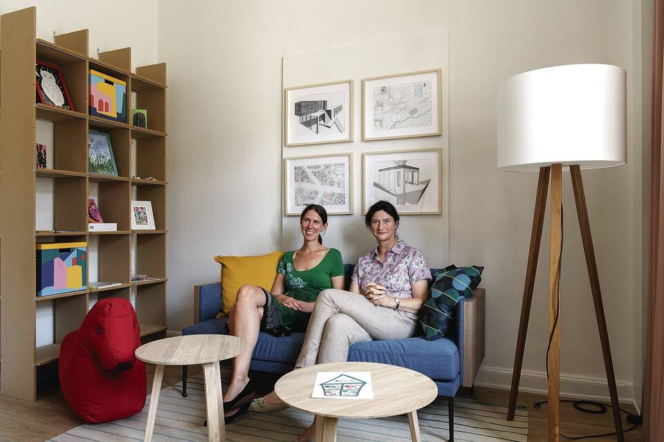 Sie freuen sich auf die Eröffnung: Astrid Helling-Bakki (links), Koordinatorin des Uniklinikums für das Childhood-Haus, und die Geschäftsführerin der Childhood-Stiftung, Andrea Möhringer, im Wartebereich des neuen Hauses. Foto: Philipp Rothe