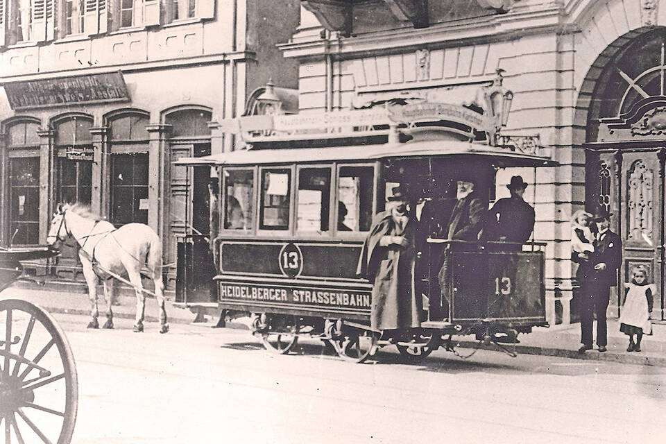 Heidelberg. An der Theaterstraße wartete ein Pferd auf die Bahn. Das klingt wie ein Witz, war aber einmal eine sinnvolle Maßnahme: Bevor die alte Pferdebahn die Steigung zum Universitätsplatz in Angriff nahm, kam ein zweites Pferd, ein "Vorspannpferd", ins Geschirr. Als diese Neuerung zwecks Beschleunigung des Verkehrs eingeführt wurde, hatte die Schienenbahn durch die Hauptstraße schon zwölf Jahre auf dem Buckel. Schon 1885 war – wie die Heidelberger Zeitung berichtete – die "officielle Probefahrt" glatt vonstatten gegangen, "abgesehen von einer bei der Rückfahrt eintretenden Entgleisung eines Waggons, die aber im Augenblick behoben war".