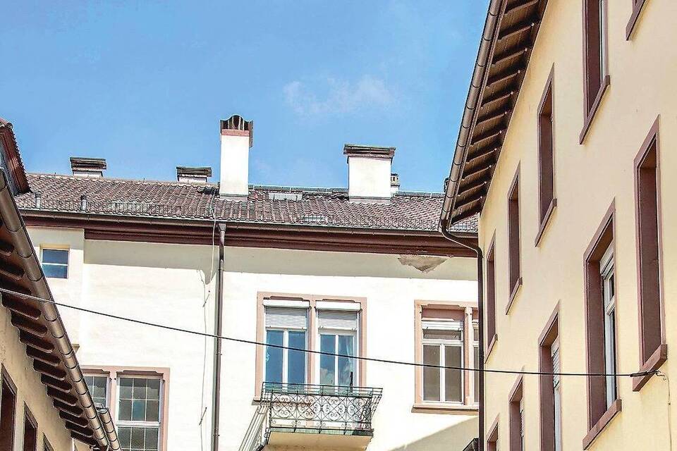 Blick vom Schlosskino-Innenhof zur Hauptstraße. Das Haus vorn und die Nebengebäude will die Volksbank Kurpfalz sanieren. Foto: privat