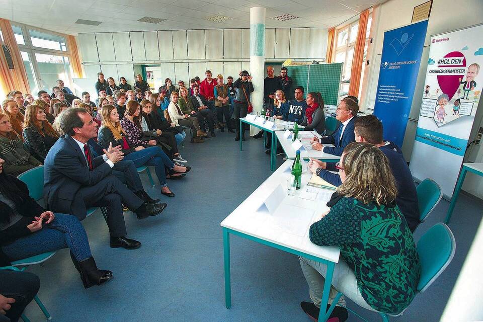 Die Sitzplätze reichten nicht aus, als Oberbürgermeister Eckart Würzner die Julius-Springer-Schule besuchte. Thema: die Wirtschaftsoberschule. Foto: Alex