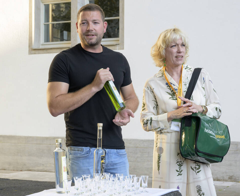 Hier stand Wirt Fabian Gieser schon mit einem Tablett voller Drinks bereit: "Ein eigens kreierter Jubiläumsaperitif zur Feier von 80 Jahren RNZ", erklärte er – dahinter steckte ein regionaler Brombeerlikör mit Sekt und frischen Beeren.