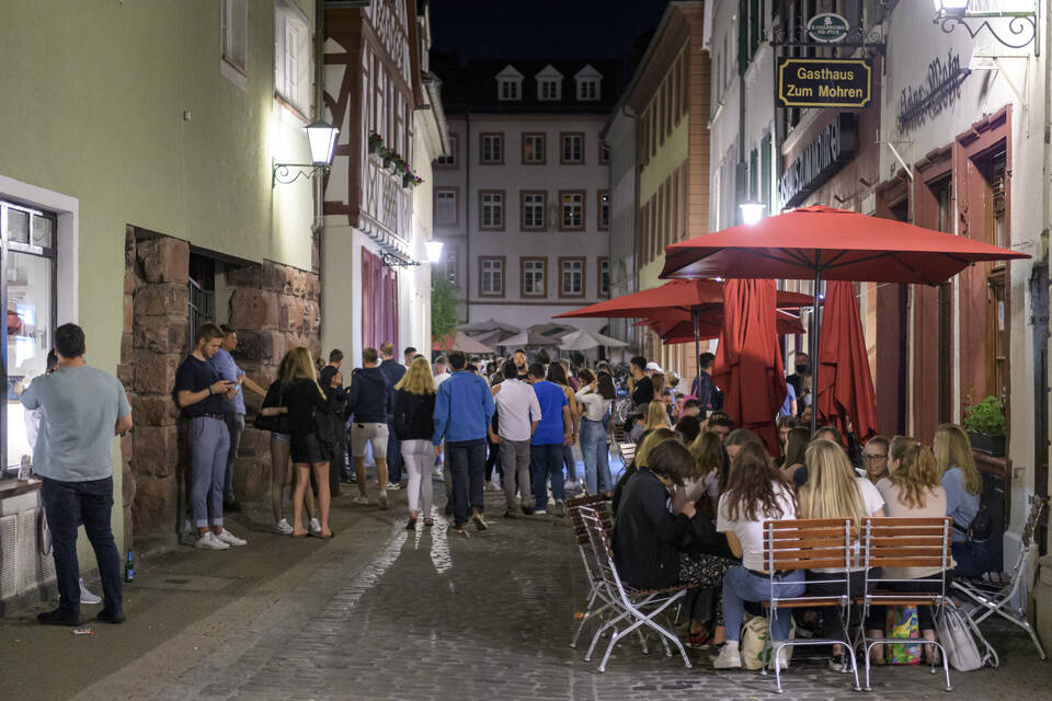 Heidelberg. Die Partymeile Untere Straße in der Altstadt ist endgültig zurück. Am Wochenende war es dort abends – freitags und samstags – so voll wie in Vor-Corona-Zeiten. An vielen Stellen kam es zu dichtem Gedränge, Maske trugen dabei nur wenige. Dass gerade junge Menschen wieder in Scharen feiern gehen, ist wenig überraschend: Die Corona-Zahlen sinken, die Temperaturen steigen, und in der Außengastronomie braucht man keinen negativen Test mehr. In den Kneipen ist der Testnachweis zwar weiterhin nötig, doch nicht überall muss man ihn auch wirklich vorzeigen. Zudem durften die Kneipen draußen am Wochenende erstmals bis Mitternacht öffnen. Das bleibt noch während der gesamten Fußball-Europameisterschaft bis 11. Juli so.