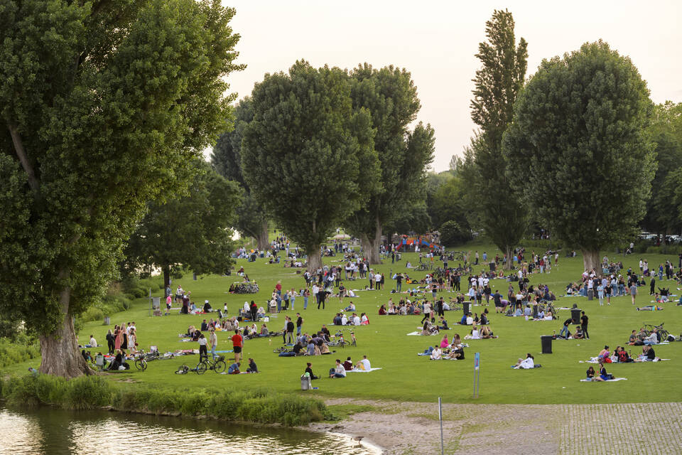 > 21.30 Uhr – Gute Stimmung auf der Neckarwiese: Die beliebteste Grünfläche der Stadt ist voll, die Laune ist gut. Die meisten halten sich an die Corona-Verordnung und sitzen in kleinen Gruppen auf mitgebrachten Decken. Nur wenige größere Menschenansammlungen sind auszumachen. Vielfach schallt fröhliche Musik aus Lautsprecherboxen. Das stört eine kleine Gruppe ältere Besucher gar nicht, im Gegenteil: Sie nutzen die Beschallung, um ihren jüngeren Sitznachbarn eine Lektion in Gesellschaftstanz mit ihren Ehepartnern zu erteilen. Die Stimmung ist friedlich. Nichts erinnert an die schweren Ausschreitungen in der Nacht auf Pfingstsonntag.