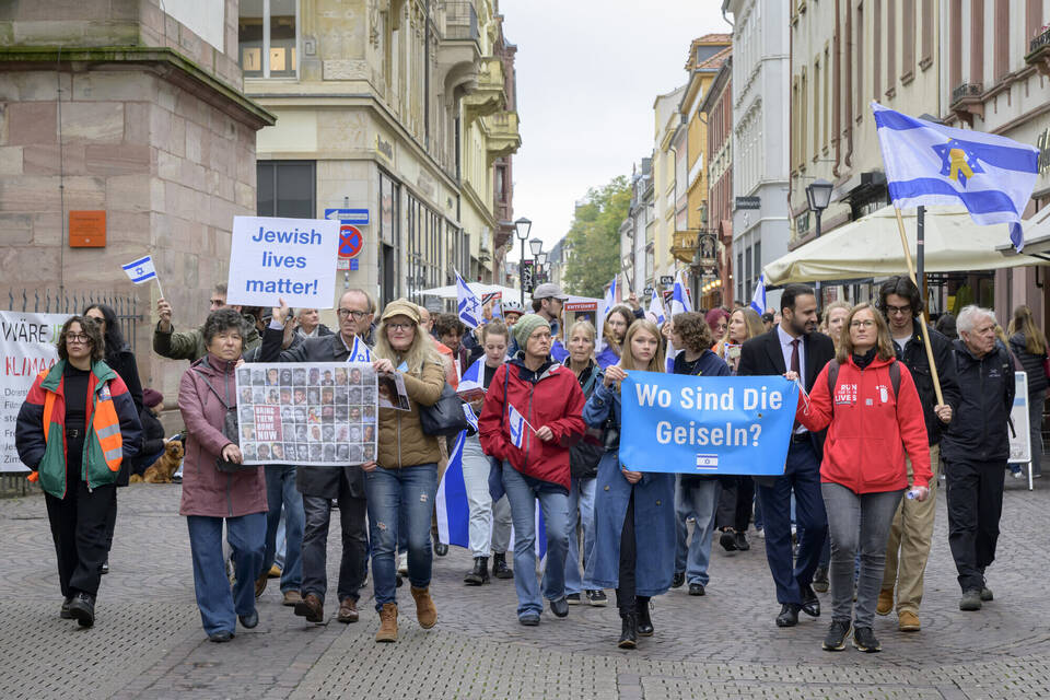 Heidelberg. Rund 70 Personen haben sich am Dienstagnachmittag am Bismarckplatz versammelt, um die Freilassung der israelischen Geiseln zu fordern, die seit dem 7. Oktober 2023 in Gaza festgehalten werden. Anlass war der zweite Jahrestag des Massakers an jüdischen Zivilisten durch die Terrororganisation Hamas.