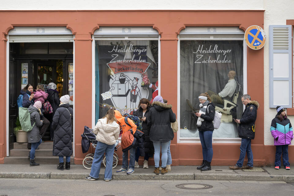 Heidelberg. (shy) Es sind Kinder, Erwachsene, ganze Familien, Studenten und Senioren, die am Samstag gegen 12.45 Uhr geduldig in der Plöck warten. Alle haben nur ein Ziel: Sie wollen ein letztes Mal in den Zuckerladen, um Süßigkeiten zu kaufen – vor allem aber, um Marion und Jürgen Brecht Adieu zu sagen.