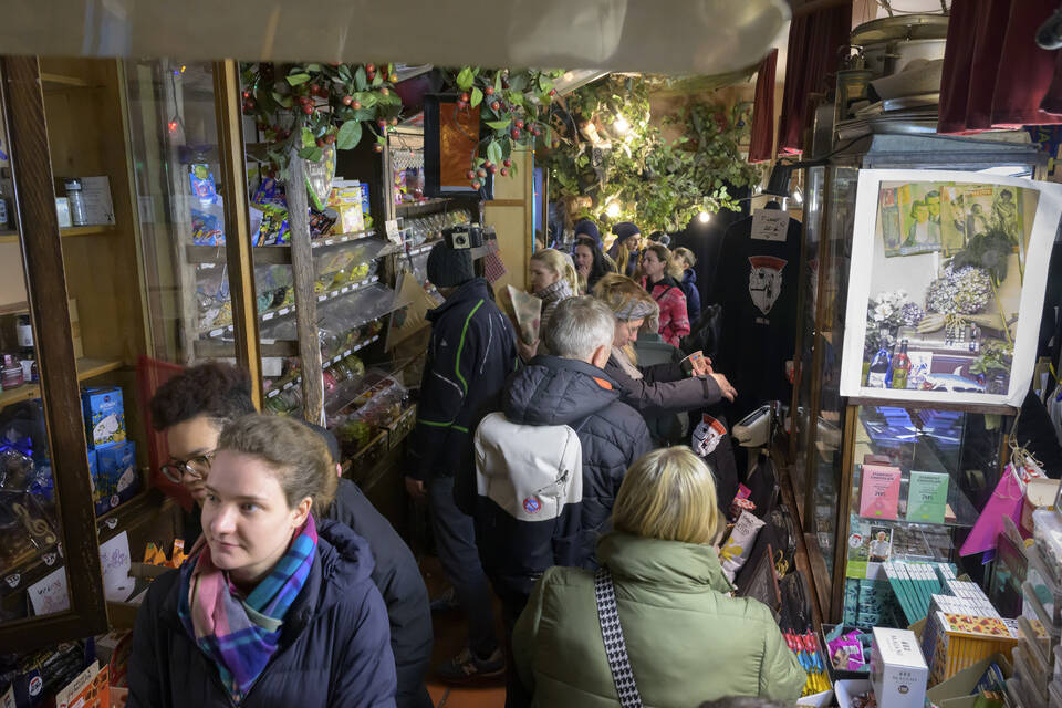 Um 16 Uhr, nach über drei Stunden, sind die Hände und Füße eiskalt und die Nasen rot gefroren, aber immerhin regnet es nicht und die Tür ist schon zum Greifen nahe. Dann – endlich drin und innerhalb von Sekunden wischen der unvergleichlich süße Zuckerladenduft und eine Welle von Herzlichkeit die Stunden des Wartens fort.