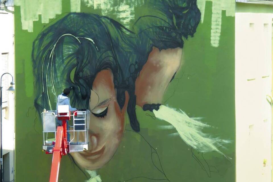 Das Festival will die urbane Kunst in alle Stadtteile tragen - Daniel Thouw malt in der Uferstraße