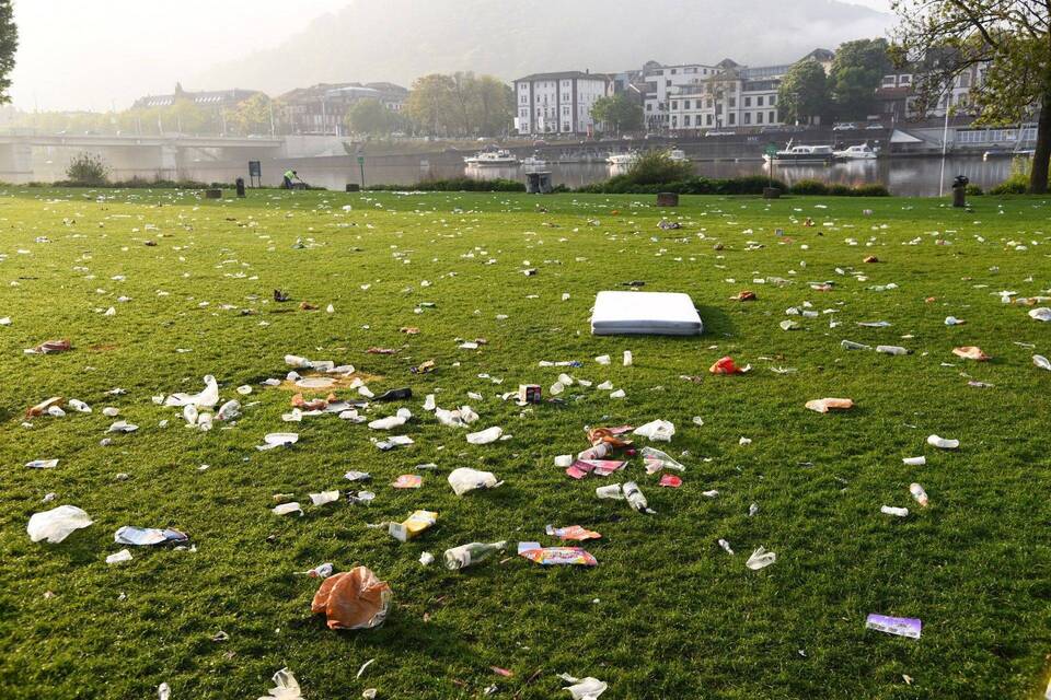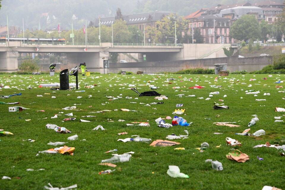 Von dem Müll feiernder Schüler übersät waren auch in diesem Jahr wieder die Neuenheimer Neckarwiesen. Foto: Priebe