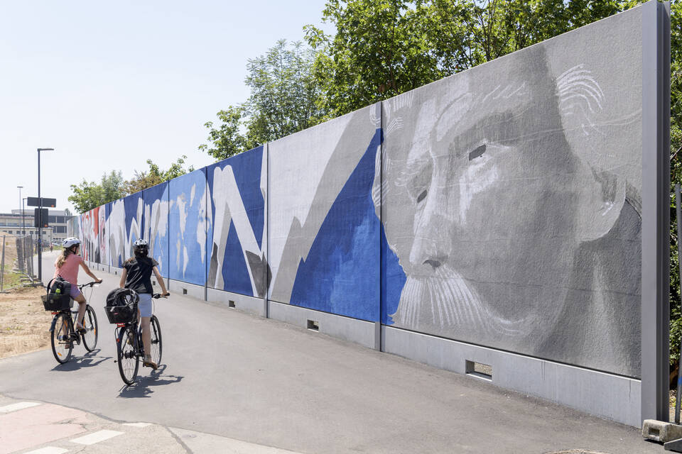 > Spiel und Sport: Ein "großes Alleinstellungsmerkmal" für das Quartier, wie es Gero Seidler von der städtischen Konversionsgesellschaft nennt, soll die Spiel- und Lärmschutzlandschaft im Nordwesten werden. Sie soll "das Nützliche mit dem Angenehmen verbinden", so Seidler - Bahnlärm abhalten und gleichzeitig Freiraum für Kinder bieten. Der Hang ist bereits aufgeschüttet, die Lärmschutzwand steht und wird gerade im Rahmen des Metropolink-Festivals gestaltet. Bis Ende des Jahres kommen eine Skate-Anlage, Rutschen und ein Kletterfelsen hinzu.