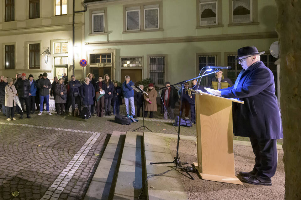 Öffentliche Gedenkfeier mit Oberbürgermeister Eckart Würzner und Rabbiner Janusz Pawelczyk-Kissin.