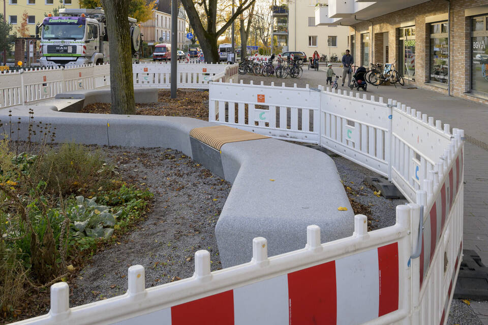 Warum waren die neuen Sitzbänke in der Rheinstraße eingezäunt?