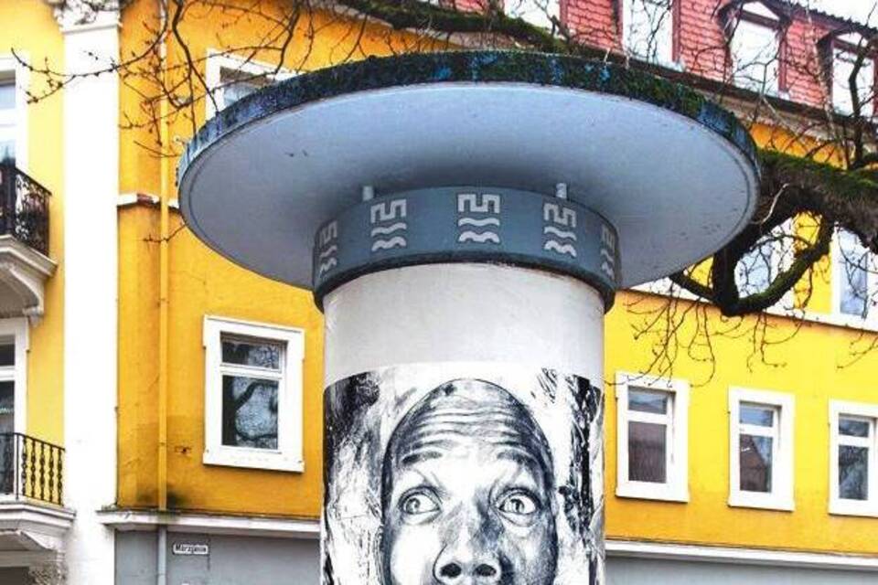 Das Gegenteil ist der Fall, versichert eine Stadtsprecherin. Das Bürgeramt habe die Litfaßsäule den Machern des Urban-Art-Festivals Metropolink zur Verfügung gestellt. Auf Nachfrage erklärt Pascal Baumgärtner als Organisator, dass die Plakate sogar in Zusammenarbeit mit Flüchtlingen entstanden seien, die auf der Mittelmeerinsel Lampedusa gestrandet waren. Hinter der Aktion verberge sich das Hamburger Künstlerkollektiv Strassenkoeter. Erstmals ausgestellt wurden die Werke in der Millerntor-Gallerie. Sie sollen auf künstlerische und provokative Weise auf die Flüchtlingsproblematik aufmerksam machen. Der Verkaufserlös kommt sogar der Initiative "Viva con agua" zugute, die sich für die Trinkwasserversorgung in der Dritten Welt engagiert. Bis Anfang nächsten Jahres dürfen die Plakate noch hängen bleiben, dann wird die Säule neu beklebt.