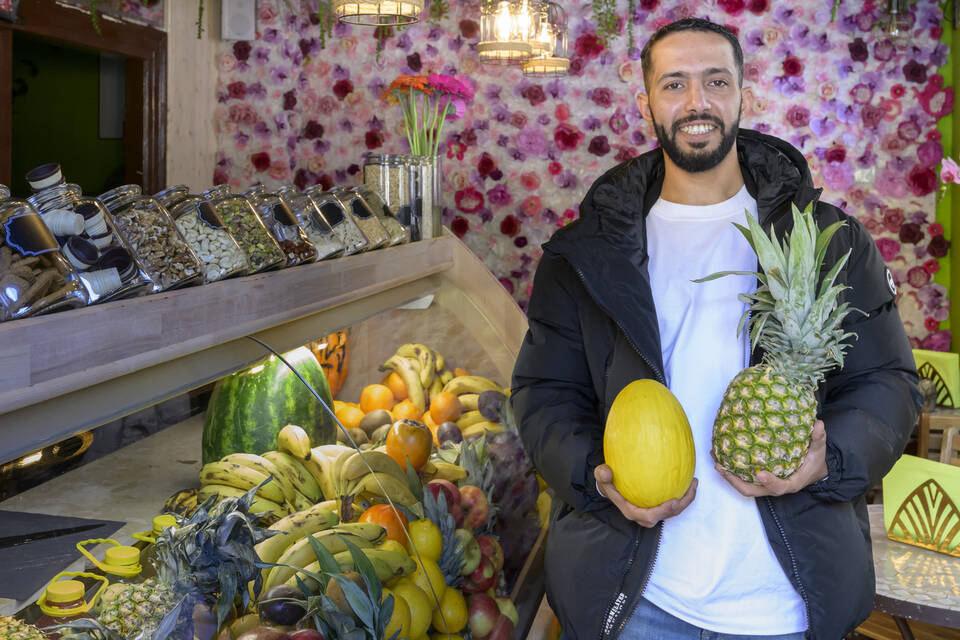 Alshumri verschlug es erst 2018 in die Region, zunächst nach Mannheim, wo er in der Eventlocation "Manufaktur" Obstteller kreierte – eine Inspiration für seinen "Earth Bowl Laden". Eigentlich wurde die Grundlage aber schon viel früher gelegt, auf dem Markt in Syrien, wo sein Vater als Obsthändler arbeitete.