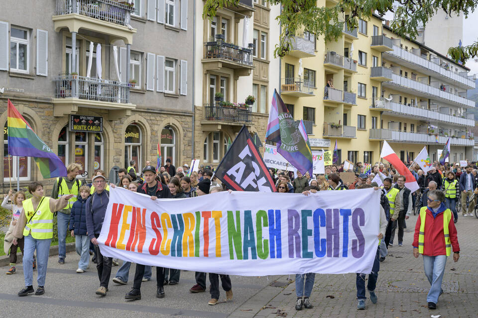 Heidelberg. Rund 500 Teilnehmer zogen am Sonntag von der Stadtbücherei in Richtung der Halle 02, um für mehr Demokratie und gegen den Rechtsruck zu demonstrieren. Organisiert wurde die Demonstration maßgeblich vom Bündnis "Kein Schritt nach Rechts", das damit ein positives Signal für die Heidelberger Zivilgesellschaft aussenden, und deren Vielfalt feiern