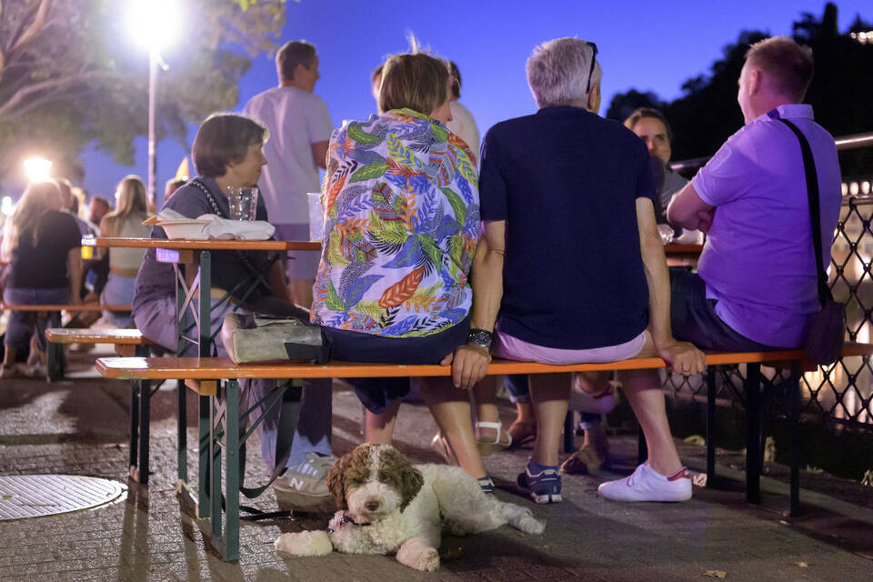 Student Jasper Novak steht am frühen Samstagabend vor der Bühne an der Heuscheuer für frisches Bier an: "So lange musste ich noch nie auf ein Bier warten", ärgert sich der 23-Jährige über die lange Schlange. Das trübt aber nicht die Freude, mal einen Tag richtig den Neckar genießen zu können: "Es ist superschön, dass die Straße gesperrt ist und man richtig an den Fluss kommt." So sieht das auch die 24-jährige Yentl: "Das ist wie ein autofreier Sonntag." Die Studentin hat den ganzen bisherigen Tag in der Uni-Bibliothek verbracht und freut sich jetzt, lokale Musiker und DJs zu hören.