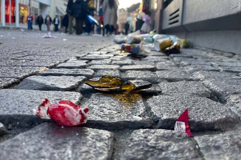 Doch während in anderen Städten gleich eine ganze Reinigungskolonne hinter dem Zug herfährt, folgten in Heidelberger stattdessen nur Hunderte partywütende Jugendliche. Auch Stunden nach dem Zug herrschte in der Hauptstraße noch Müllchaos.
