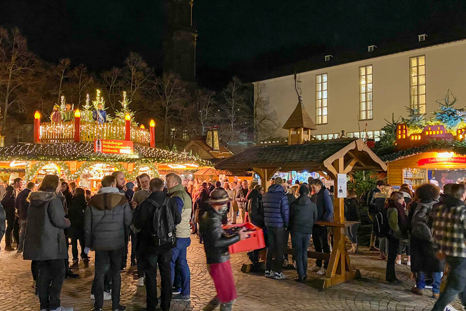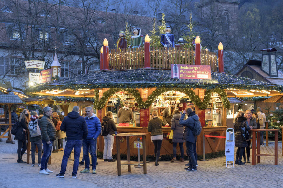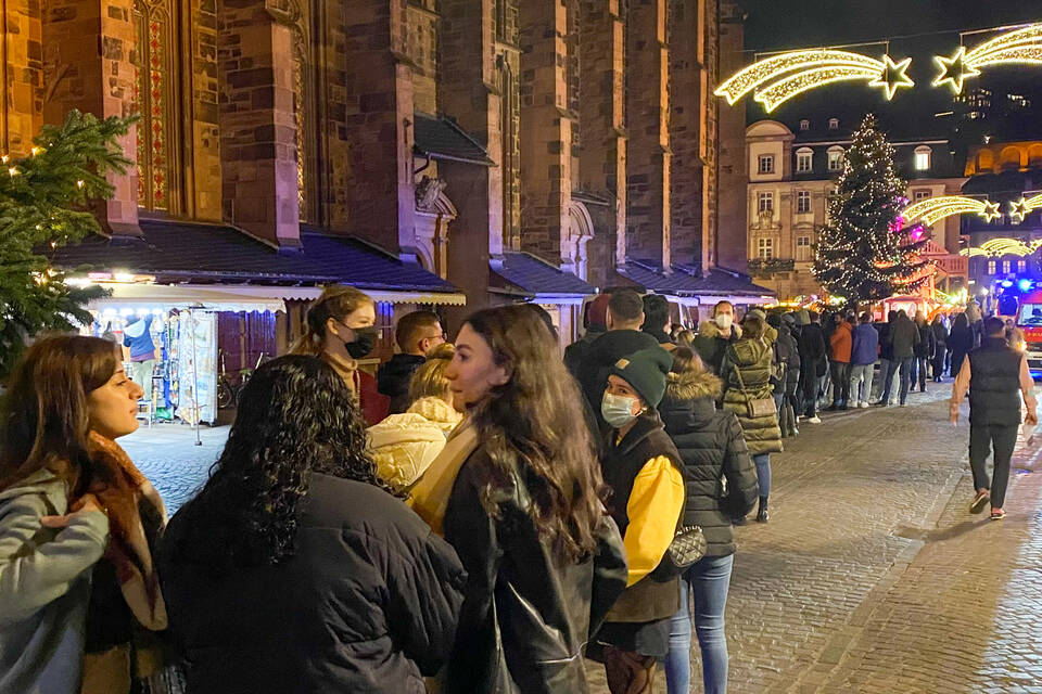 Besonders viele Studierende nutzten gleich am ersten Tag die Chance auf einen Glühwein. "Ich bin im dritten Semester und erlebe den Heidelberger Weihnachtsmarkt zum ersten Mal", sagte Medizin-Studentin Chiara Bohnert auf dem Uniplatz. "Die Kontrollen finde ich gut, da fühl’ ich mich sicher." 2020 war der Weihnachtsmarkt wegen Corona noch komplett ausgefallen.