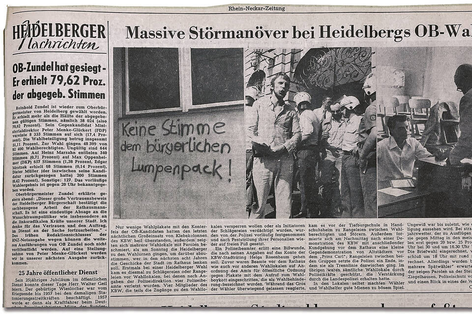 Dazu Politik und Polizeibehörden, die mit der Wucht und der Art des Protestes oftmals überfordert waren. Und mittendrin OB Zundel, der oftmals versuchte, Konflikte zu deeskalieren – und eigene politische und rechtliche Positionen hinterfragte, wie Katja Nagel in ihrem Buch "Die Provinz in Bewegung – Studentenunruhen in Heidelberg 1967 – 1973" feststellt.