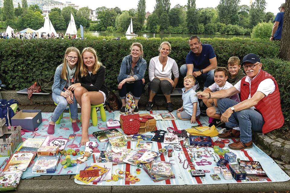 Lotte und Paula (links) spannten ihre ganze Familie für den Flohmarktstand ein. Drei Generationen halfen beim Verkaufen. Danach ging es zum Entenrennen an den Neckar.