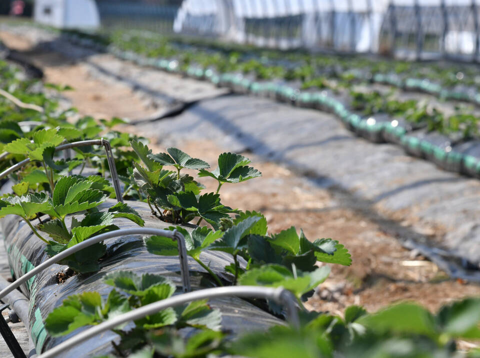 Die Pflanzen, die in Reihen angeordnet unter der Folie wachsen, sind schon für die Ernte im kommenden Jahr bestimmt. "Wir haben sie neu gepflanzt, damit sie dann ab April Früchte tragen", erzählte Jost.