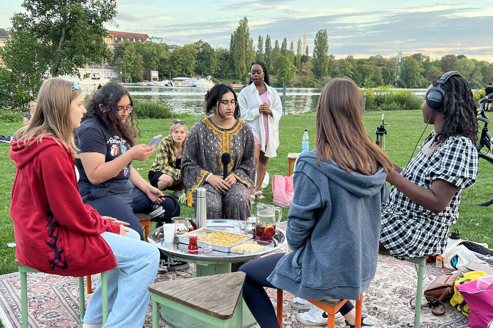 Später laden Jasmin und Katharina bei Baklava und türkischem Tee zum Podcast "Çay mit Y" auf der Neckarwiese ein. Auch hier gibt es Startschwierigkeiten, doch schnell sammeln sich etwa 20 Gäste auf dem Perser-Teppich und erzählen von persönlichen Erfahrungen, was sie bewegt und ermutigt. "Es war richtig spannend, mit ihnen ins Gespräch gekommen und die unterschiedlichen Lebensrealitäten kennenzulernen", sagt Jasmin später.