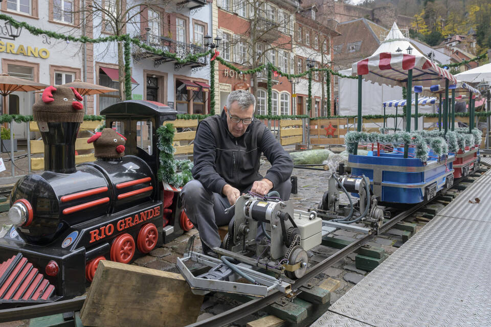 Heidelberg. Eifrig schraubt Alexander Fritz mit seinem Team an der Kindereisenbahn auf dem Kornmarkt. Er kann es kaum erwarten, bis der Weihnachtsmarkt am