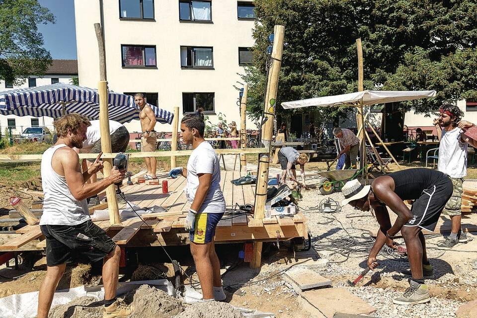 Die Hagebutzen waren die ersten überhaupt, die nach Mark-Twain-Village zogen. Im Februar 2017 kamen die ersten Pioniere, im November desselben Jahres war die Wohngruppe komplett. "Das war ein tolles Gefühl. Wir hatten viele Freiheiten und mussten keine Rücksicht auf Nachbarn nehmen", berichtet Mareike Janßen. Draußen sitzen bis spät in die Nacht, oft mit Live-Musik. "Im ersten Sommer gab es bei uns so viele Konzerte wie nie danach", berichtet Pascale Croissier.