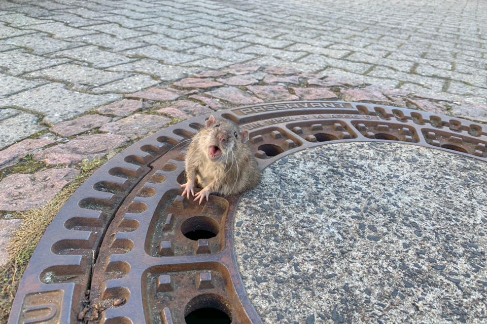 Zu viel Winterspeck - Kanalratte aus Gullydeckel befreit