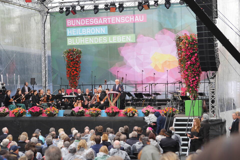 Dementsprechend gab’s viel Musik aus der Käthchenstadt: Das Württembergische Kammerorchester sowie die 100 Stimmen des eigens ins Leben gerufenen Buga-Chors sorgten zusammen mit weiteren Künstlern für Stimmung. Für Zustimmung hatte zuvor Kretschmann gesorgt: Er lobte den Ideenreichtum auf dem Gelände und betonte, dass die Buga Inspiration für heimische Gärtner biete. "Denn Naturschutz beginnt bei uns zu Hause", befand der grüne Ministerpräsident und sprach sich vehement gegen den Trend der Steingärten aus.
