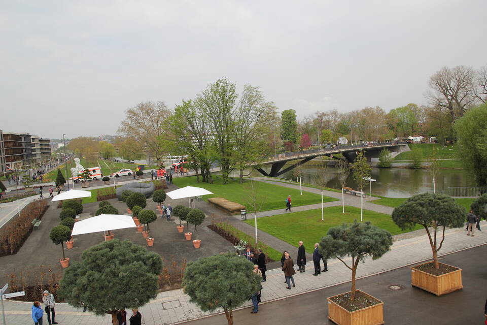 Trotz Nieselregens am Morgen hatten rund 10.000 Personen den Eröffnungstag für einen Besuch genutzt. Kurz zuvor waren noch Steine gesägt und Blumen gepflanzt worden. Bis auf kleine Restarbeiten präsentiert sich das Areal aber einladend: Die Blütenpracht duftet, an zahlreichen Ecken erklang Livemusik, Kinder zeigten Tänze, Besucher ließen sich auf Liegestühlen nieder - in einem Bereich, in dem sich Jahre zuvor hauptsächlich Trinker und Drogensüchtige aufgehalten hatten.