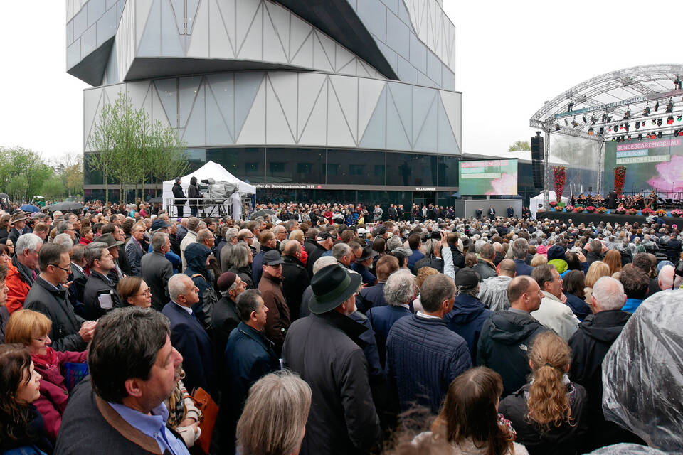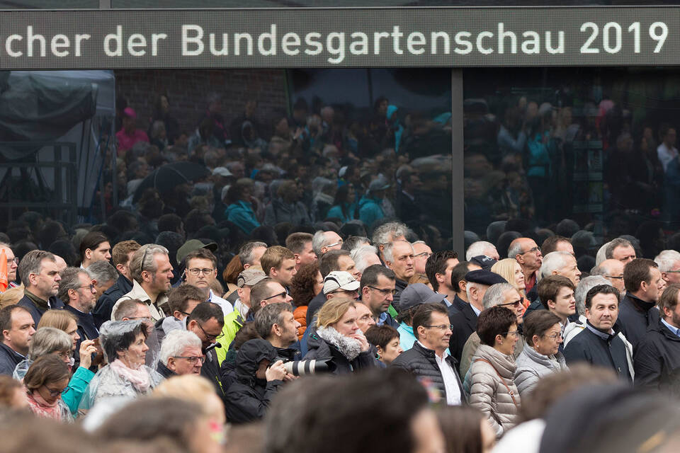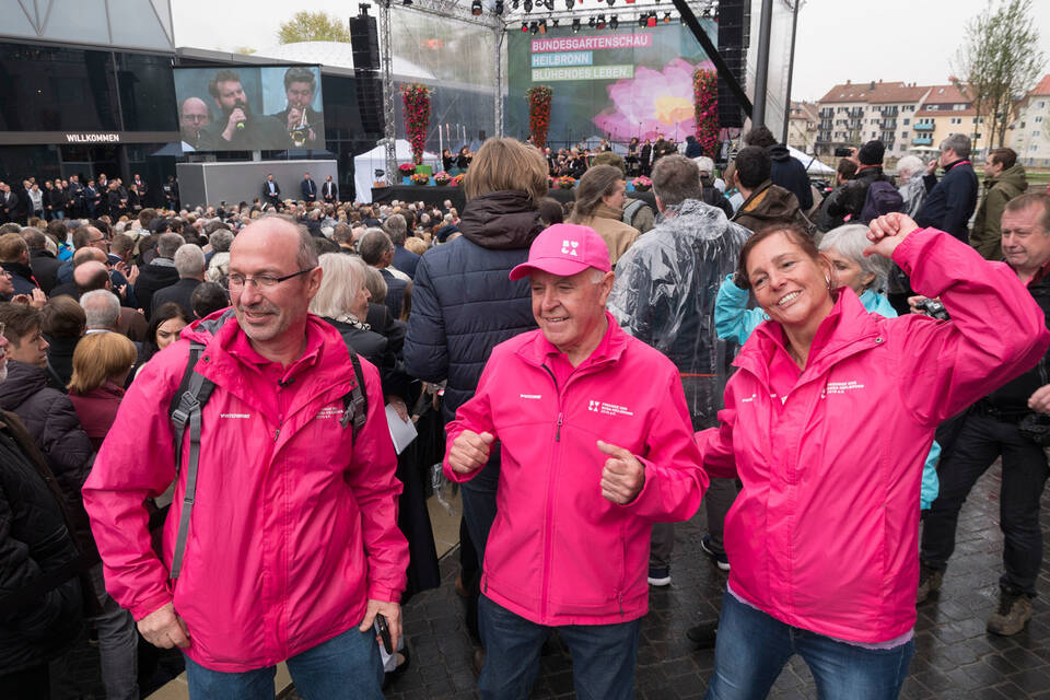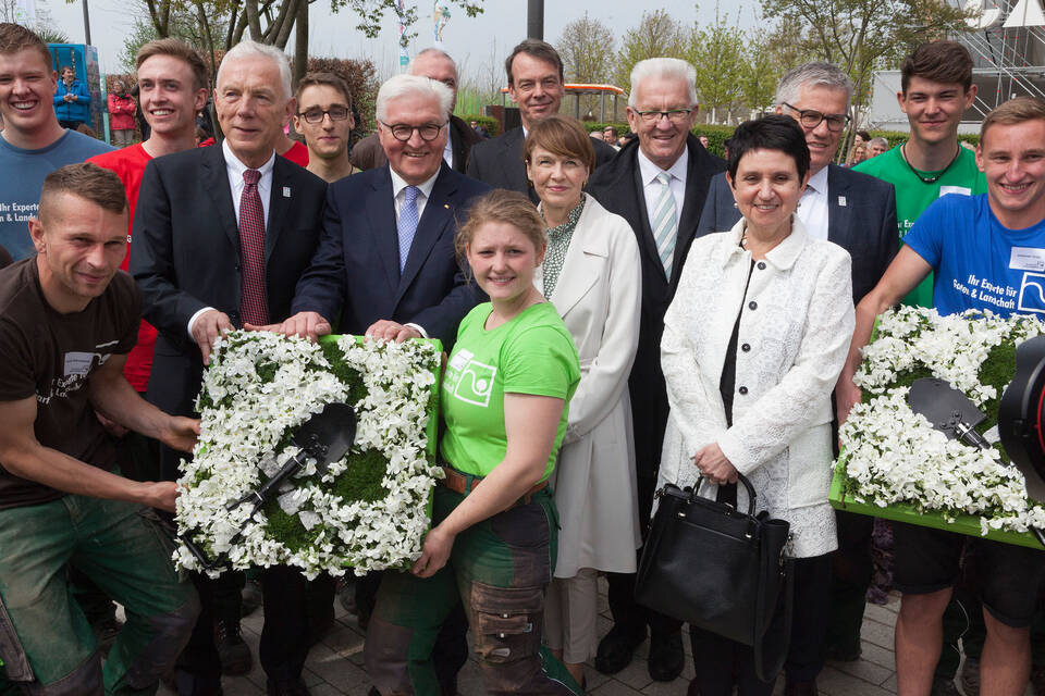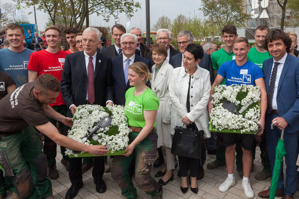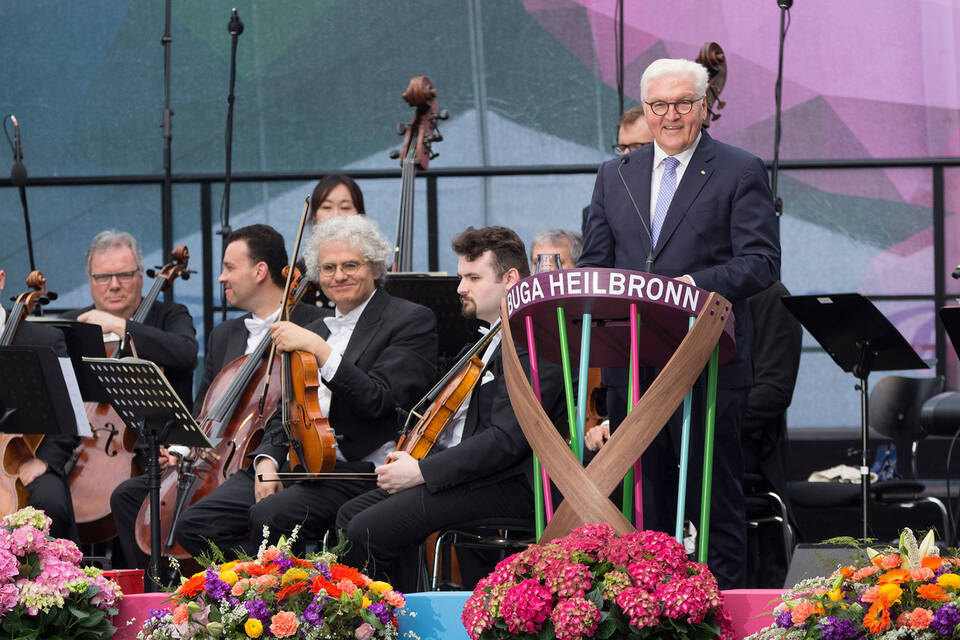 Heilbronn. 1,3 Millionen Blumenzwiebeln, 200.000 Frühjahrsblüher, über 100.000 Stauden und 5000 Rosen freuten sich am gestrigen Mittwochmorgen über Regen. Die rund 2000 geladenen Gäste zur Eröffnung der Bundesgartenschau eher weniger - viele saßen zunächst mit Regenschutz bei der Eröffnungszeremonie. Doch das Wetter kriegte die Kurve: Als um 12.20 Uhr die ersten Besucher das rund 40 Hektar große Gelände erkundeten, linste die Sonne durch die Wolken. Zuvor hatten Bundespräsident Frank-Walter Steinmeier und Ministerpräsident Winfried Kretschmann in ihren Reden überraschend deutliche Worte gefunden.