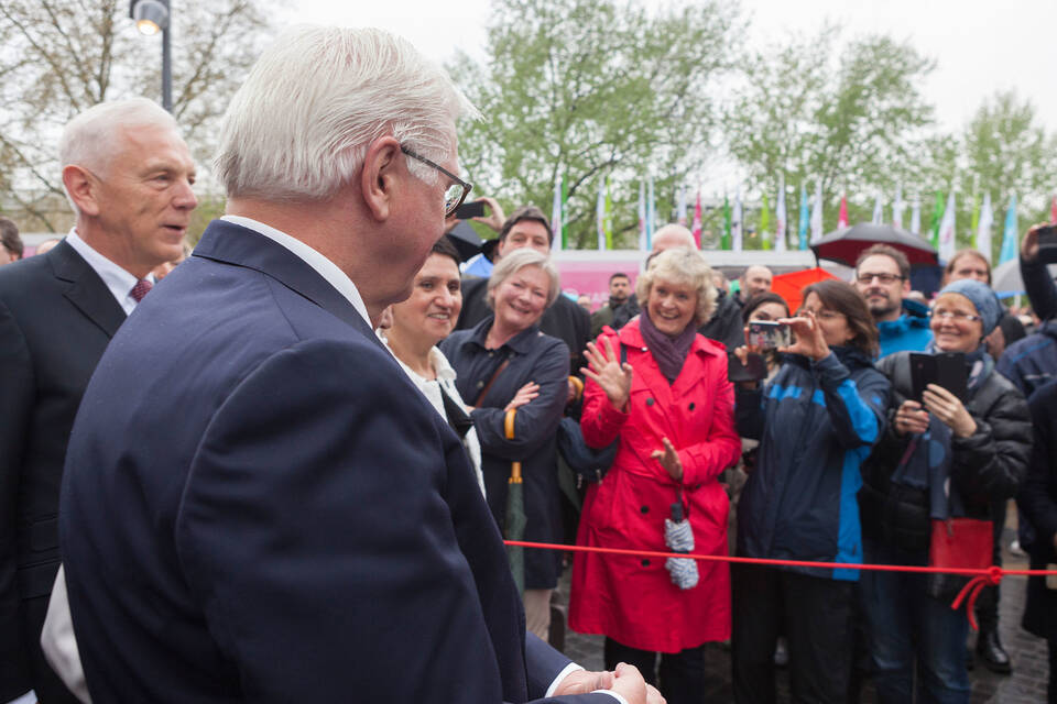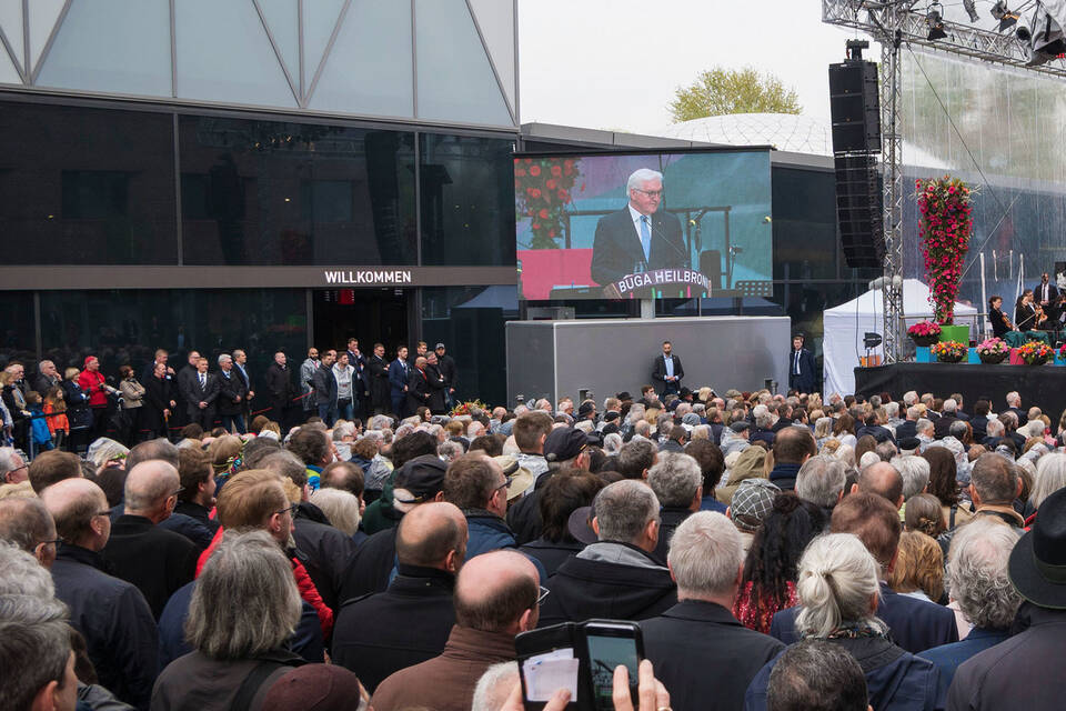 Die Heilbronner Buga verbindet laut Oberbürgermeister Harry Mergel Garten- und Stadtausstellung: Neben den vielen Blumen und 964 Bäumen entstand dort auch der neue Stadtteil "Neckarbogen". 3500 Menschen werden dort einmal leben, einige sind bereits eingezogen. Diese Idee lobte Steinmeier ausdrücklich: Die Grundstücke seien nicht an den Meistbietenden verkauft worden, sondern an jene mit dem besten Konzept. Nicht zuletzt genossenschaftliche Wohnungen sorgten dafür, dass Menschen dort zu bezahlbaren Preisen leben könnten. Schließlich trieben stark steigende Mieten vielerorten die Menschen auf die Straße.