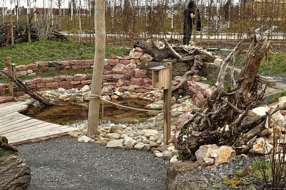 Es gibt einen Natur-Entdeckergarten, in dem alle Materialien gebraucht oder gespendet sind, einen Apothekergarten und vieles mehr. Auch die Kirchengemeinden sind mit einem eigenen Areal samt "Outdoor-Kirche" vertreten, wo eine tippiartige Holzkonstruktion nur darauf wartet, dass die Pflanzen hochwachsen. Und überall sieht man Bäume stehen, die 2023 "Zukunftsbäumchen", die nach der Buga im Mannheimer Stadtgebiet verteilt gepflanzt werden.