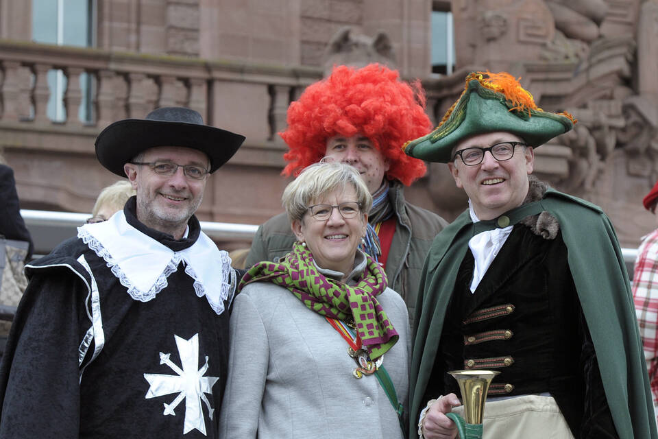 Einig waren sich aber alle drei: "Wir werden einen schönen Tag erleben", sagte Kurz, der als Jäger aus Kurpfalz gekommen war. "Wenn die Narren in Mannheim unterwegs sind, gibt’s kein schlechtes Wetter", ergänzte der als Musketier verkleidete Dillinger. Steinruck fasste sich hingegen kurz: "Ahoi!"