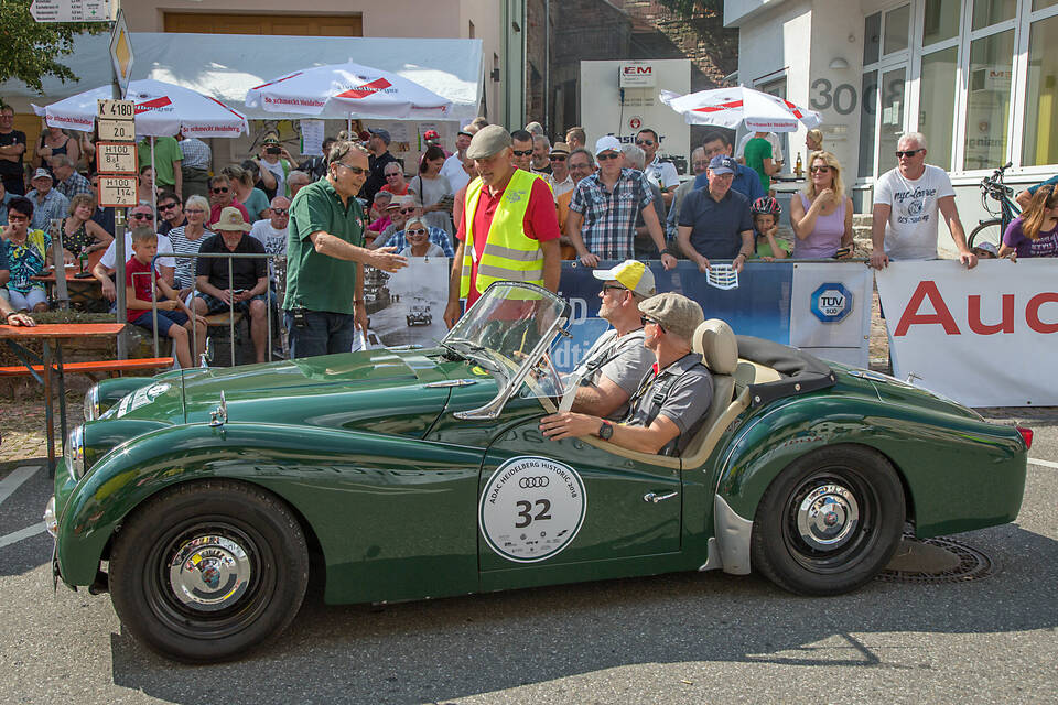 Nach wie vor unübertroffen ist die Ausstaffierung der Ortsmitte und des Rundkurses mit Strohballen als Aufprallschutz. Die Bauern des Dorfes stellen sie zur Verfügung, die Läden sind am Freitagnachmittag geschlossen. Spechbach feiert - die "Heidelberg Historic" und sich selbst. "Wenn nicht alle im Ort da mitziehen würden, könnte man das vergessen", sagt ein Spechbacher am Straßenrand. Und er ist stolz, als er das sagt.