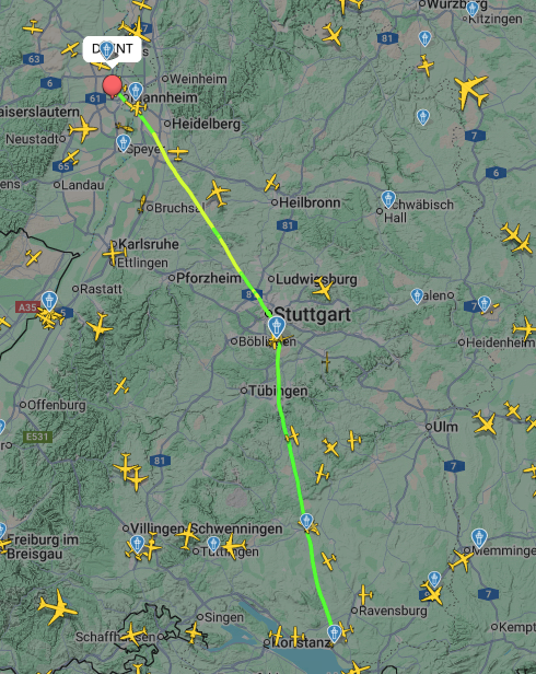 Laut Flightradar war das Luftschiff am Morgen in Friedrichshafen gestartet. Es überflog Tübingen und Stuttgart. Kurz nach Mittag erreichte es dann die Region, wo es unter anderem vom Heidelberger Pfaffengrund aus zu sehen war. Über Mannheim verabschiedete es sich dann in Richtung Frankenthal.