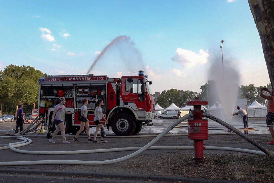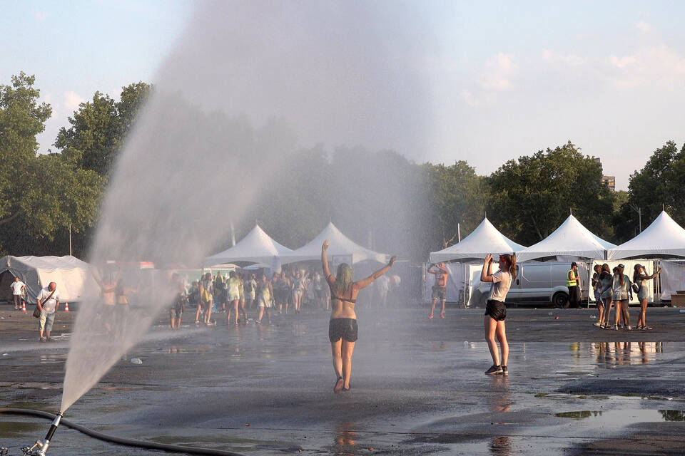 Mannheim. (rnz/rl) Beim Holi-Festival auf dem Mannheimer Meßplatz sorgte die Hitze für zahlreiche Hitze-Notfälle. Bei dem gegen 13 Uhr startenden Festival befanden sich zeitweise rund 4000 Besucher auf dem Platz. Trotz der extrem heißen Temperaturen auf dem Asphaltplatz bei direkter Sonneneinstrahlung ohne Schatten, ließ sich das hauptsächlich jüngere Publikum nicht vom Besuch der Veranstaltung abhalten. Hunderte junge Menschen füllten den Platz, um bei lauter Musik mit Farbbeuteln um sich zu werfen.